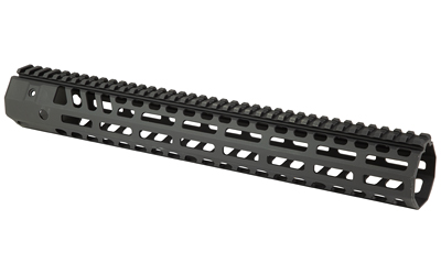 A modern 14.8″ M-LOK handguard with 45 degree mounting offsets and an internal diameter of 1.7″ to accept most sound suppressors.